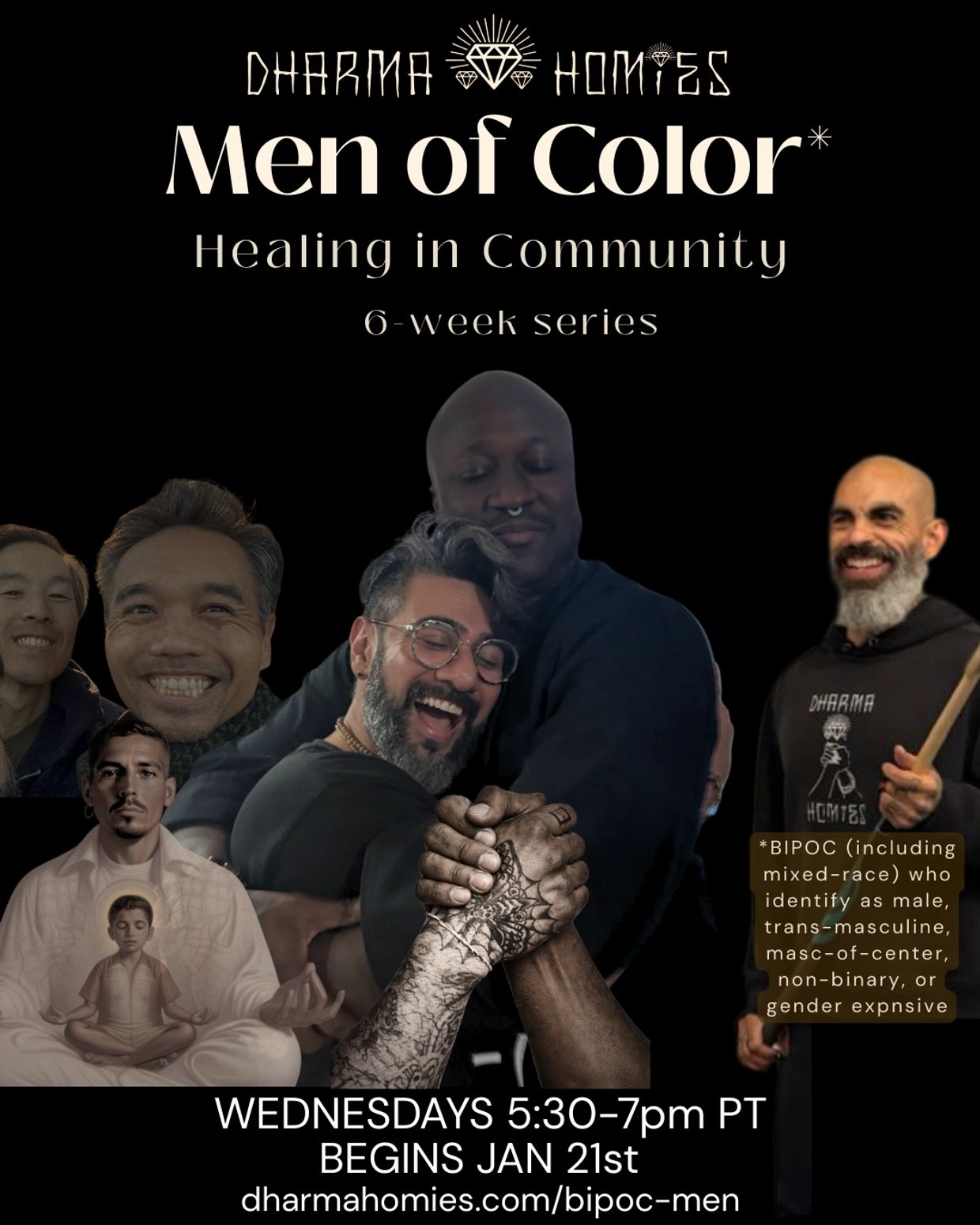 This class series is for men of color* to connect with ourselves and each other as we explore conditioning around patriarchy in order to be safer refuge for each other and those around us.
